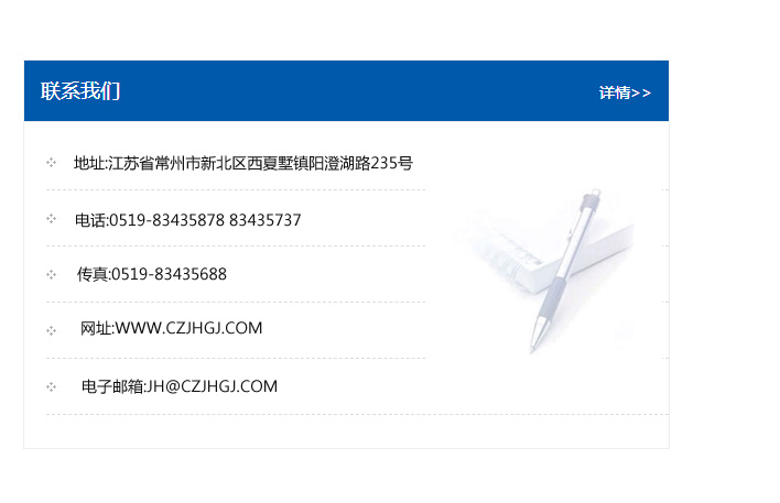 地址:常州市新北區友邦商務大廈1幢16、17層  電話:0519-85101652  傳真:0519-85112595  郵編:213022  網址:www.cz-jiayue_cn.fanqiepp.com  郵箱:xiajifengaa@163.com